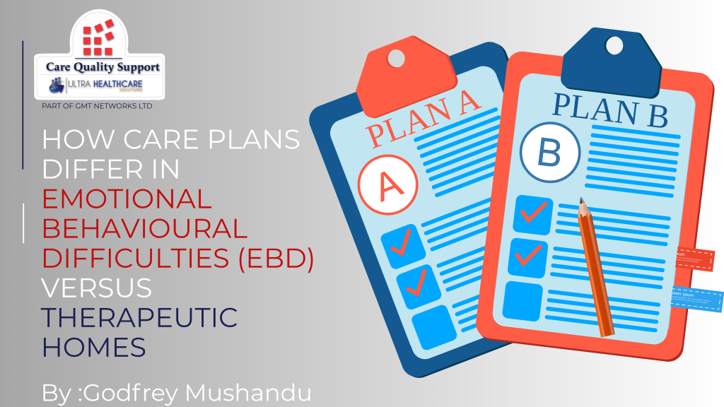 Care plans in Emotional Behavioural Difficulties (EBD) homes and therapeutic residential homes both aim to meet individual needs, but they differ in structure, focus and underlying approach. The key distinction lies in how they address behaviour versus trauma and emotional healing. This article addresses how care plans differ in Emotional Behavioural Difficulties EBD versus therapeutic homes.