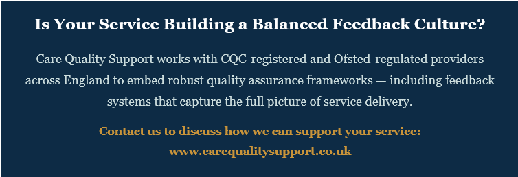 A healthy feedback ecosystem in any CQC-registered service is not one where concerns are suppressed, quite the contrary. It is one where concerns are heard, acted upon, and documented, and where achievements are recognised with equal rigour.